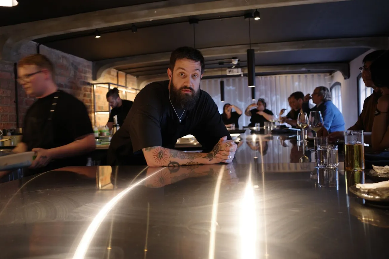 “The more restaurants I open, the more softly spoken I become,” Alex says when I complain that he isn’t talking loudly enough into the Tascam recorder. We’re in the front room of Albatross Death Cult, a beautiful and bare-brick building in the Jewellery Quarter. Despite what his claim suggests, this is actually only Alex Claridge’s second restaurant. The first is The Wilderness, an establishment that likely needs little introduction to Birmingham readers, but just in case it does, it is Birmingham’s famous and/or infamous Rock and Roll fine dining extravaganza. But his new place is different: an immersive experience where diners eat in the kitchen at a single table, making incessant small talk with the other customers and chefs. “Traditionally in kitchens, there’s not much talking,” he explains. “But here you’re talking constantly for four hours. My poor little throat. I get home and say to Rachael: Do you wanna never talk again? Would that be ok?”
