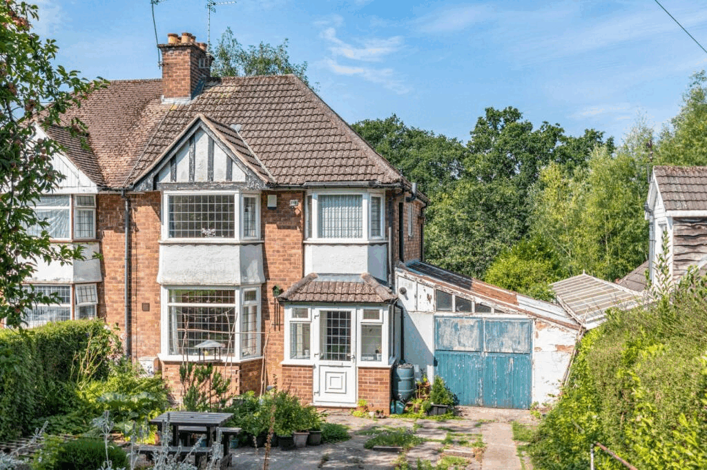 This 1930s semi-detached home in Hall Green has three bedrooms and backs onto Shire Country Park — so there’s plenty of green space and the rooms are flooded with natural light. Plus, the master bedroom has a Juliet balcony overlooking the vast garden. It’s available for £375,000.