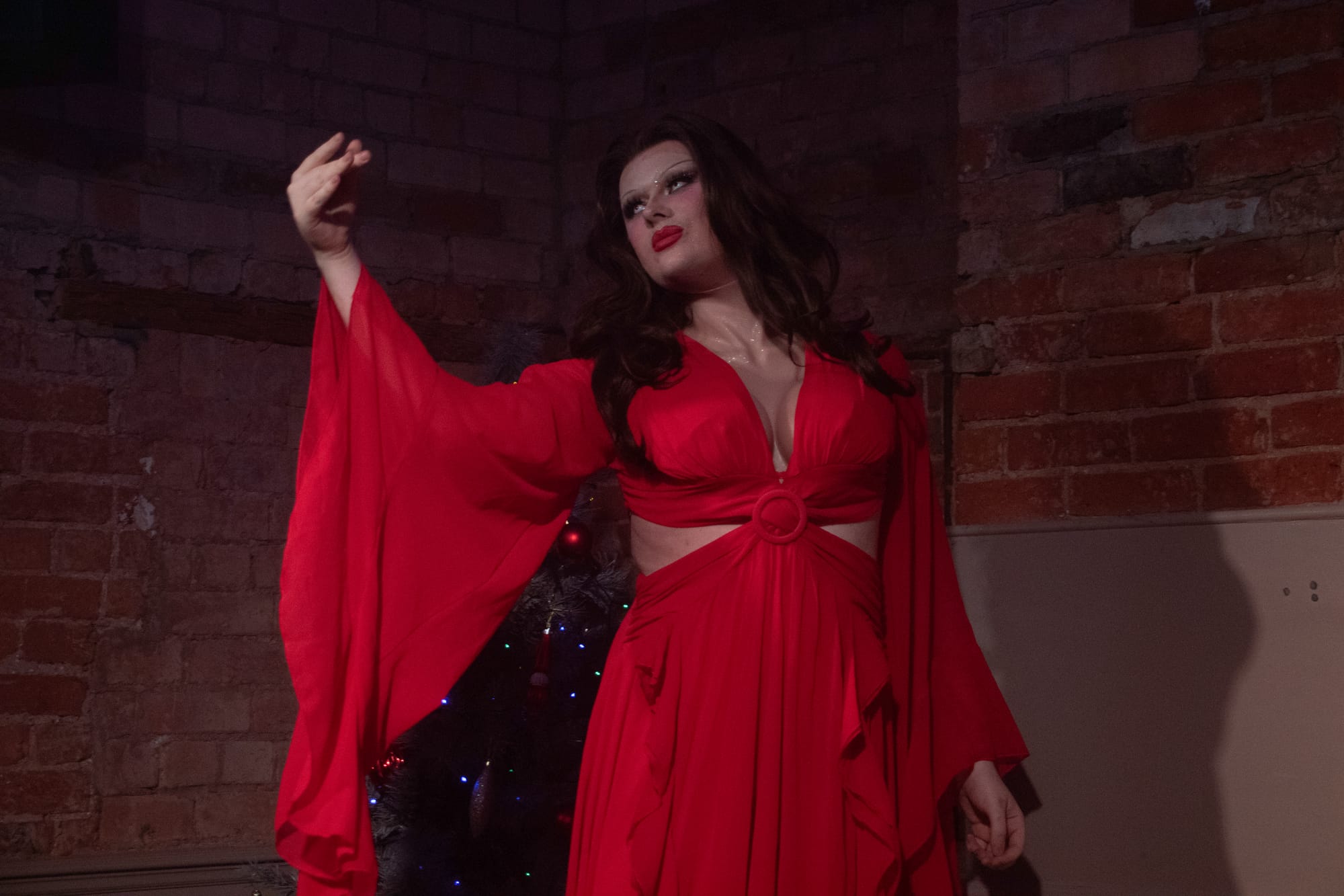 Soul is a member of a relatively new drag family called Haus of Sparks which includes her, Sparks and a queen called Misty. Their show, which I attend at Missing Bar, is a haywire homage to pop culture featuring a Pussycat Dolls medley and parody of The Traitors, with the queens adorned in sparkly traitors’ robes.