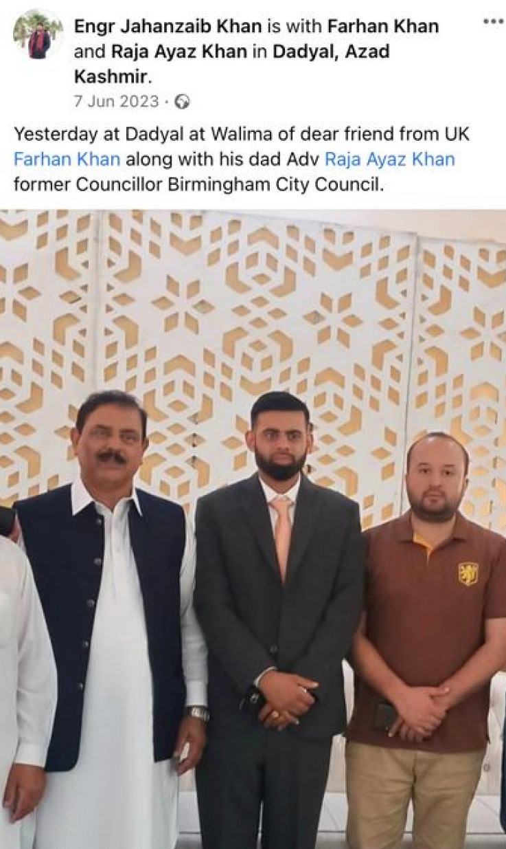 Dear readers — today, we’ve got a story about a Birmingham councillor and a tricky family situation. Last year, a Birmingham man named Fahan Khan was found guilty of supplying crack cocaine and heroin by a court in Ayslebury. But Khan, of Floyer Road in Small Heath, wasn’t there to hear his sentence. He was judged in absentia, having fled the UK for Pakistan during a police investigation. And it’s in Pakistan that his brother, Small Heath Labour councillor, Saqib Khan, has been photographed — apparently attending his fugitive brother’s wedding. What’s going on?