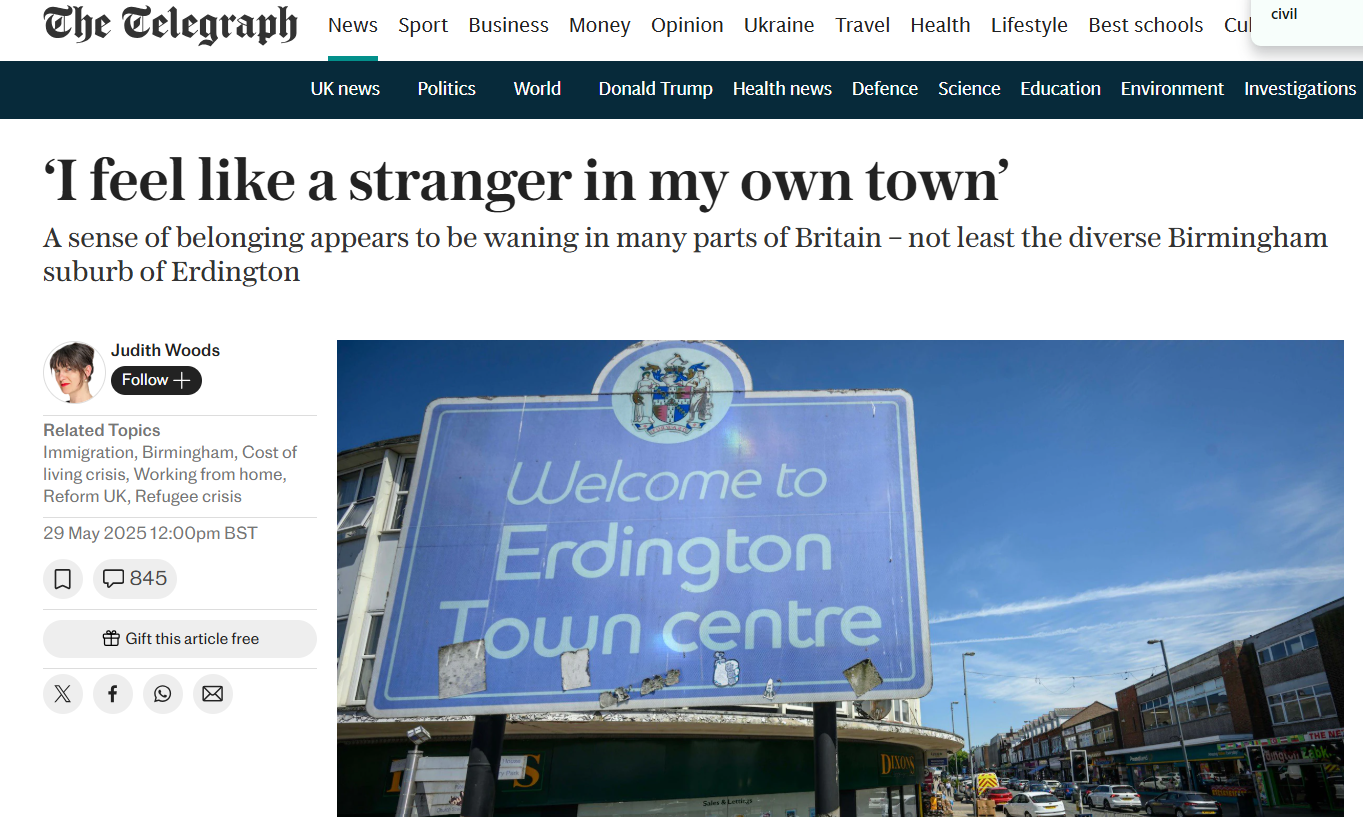 Any threat of violence is an awful thing, but Wood’s widely read Erdington profile — in which she finds community spirit ailing, with residents terrified of crime and migrants — leans heavily on racialised reporting. She details the African and Polish shops but misses the bookies and well-attended pubs. There’s a league table of where Erdington migrants come from, but it ignores that the suburb is whiter-than-average for the second city. National talking points on immigration and politics are hashed into local concerns. One is left with the sense that systemic problems in Britain are the result of diverse areas like Erdington.
