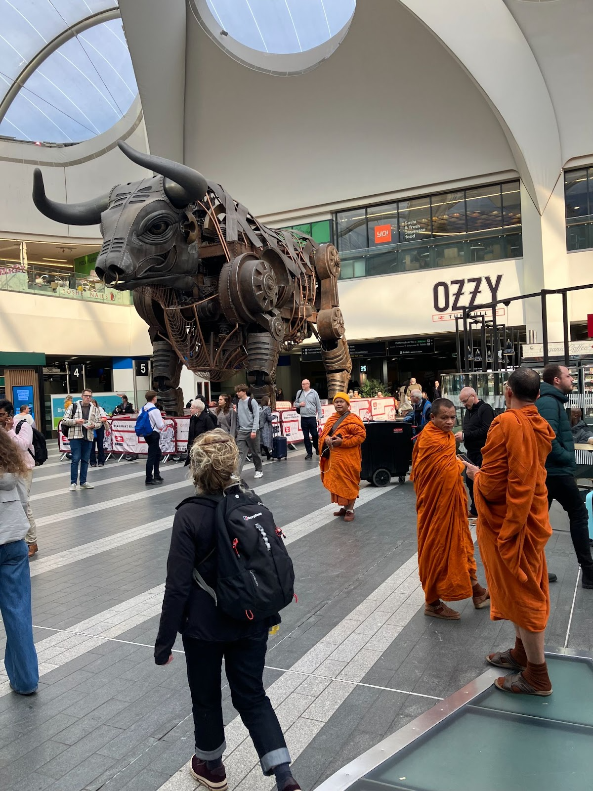 Buddhist monks view Ozzy the Bull at New Street Station. Photo: Samuel McIlhagga. Know about the monks’ visit? Let us know in the comments.