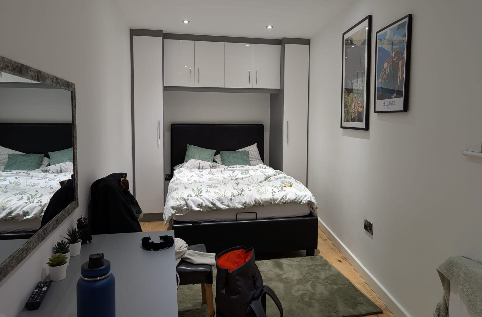 The flat itself is perfectly nice. I poke around a bit but it doesn’t take long — I only have access to four small rooms: the utility and my own bathroom on the ground floor and my bedroom and the shared kitchen upstairs. The remaining two doors belong to another bedroom and bathroom. After attempting to make myself a hot chocolate in the Nescafe Dolce Gusto Oblo machine and failing miserably, I retreat to my room. I’m impressed by the property’s general level of cleanliness (I’d suggest that if Jaspal does live here, he’s handy with the Cillit Bang but the man who let me in has already told me they get professional cleaners in before every visitor).