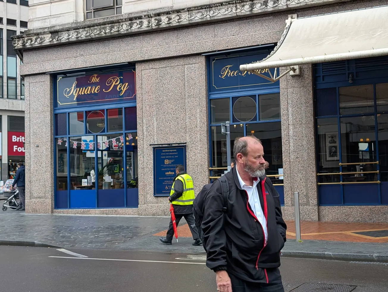 It’s Thursday afternoon at the Square Peg pub in Birmingham city centre and the pints are flowing. The pub occupies the ground floor of the Lewis Building, a grand Victorian structure made of Portland stone, on the corner of Corporation Street and Bull Street. Despite its resplendent exterior, The Squeg – as this Wetherspoons is affectionately known – has a bit of a reputation for attracting oddballs and troublemakers. Earlier, when I put a call out on my Instagram for friends to come and join me here, several alluded to the potential for me to “get stabbed”. Now I’m here, there’s an eclectic mix of lone drinkers, post-work punters and families making the most of discounted kids meals during half term. It seems alright to me – but then I have just won 34 quid on a slot machine.