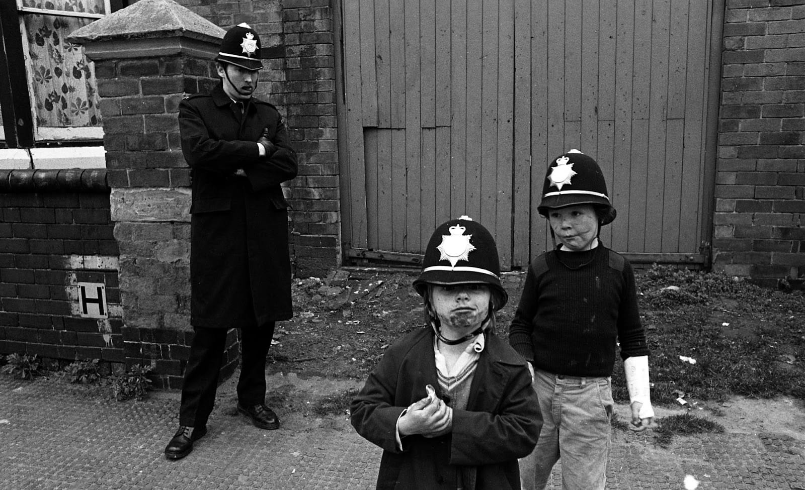Brian Homer took this photograph at the 1978 WELD Carnival in Handsworth, a community event organised by two primary school teachers during a time when the area was undergoing regeneration. In his photozine Saltley 1978, Homer writes: “The images give a flavour of the project and its rather anarchic (in a good way) approach, where art was used to give young people a vision of the possibilities beyond the confines of the inner city.”