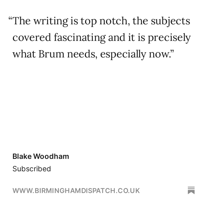 📰 It’s not often The Sunday Times comes to Birmingham unfortunately— but at least when they do they cover the stuff that matters. Here, journalist Harry Wollop spends 24-hours in the Briar Rose branch of Wetherspoons in the city centre, in a bid to find out why the chain of boozers is so popular (or at least that’s what he tells himself — it’s journalism, guys, honest). Seriously though, it’s a highly entertaining read, if a bit like the diary of an anthropologist exploring an unknown territory.