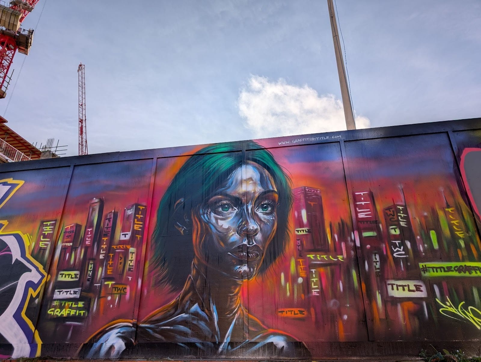 Changing of the guard: new work by graffiti artist TITLE has appeared on the hoardings along High Street in Deritend. Peeking above are the cranes from Caddick’s construction of new, build-to-rent neighbourhood The Stone Yard on Upper Trinity Street. The regeneration project will create roughly 1000 homes by spring 2027, significantly changing the landscape of this currently under-used part of the city.