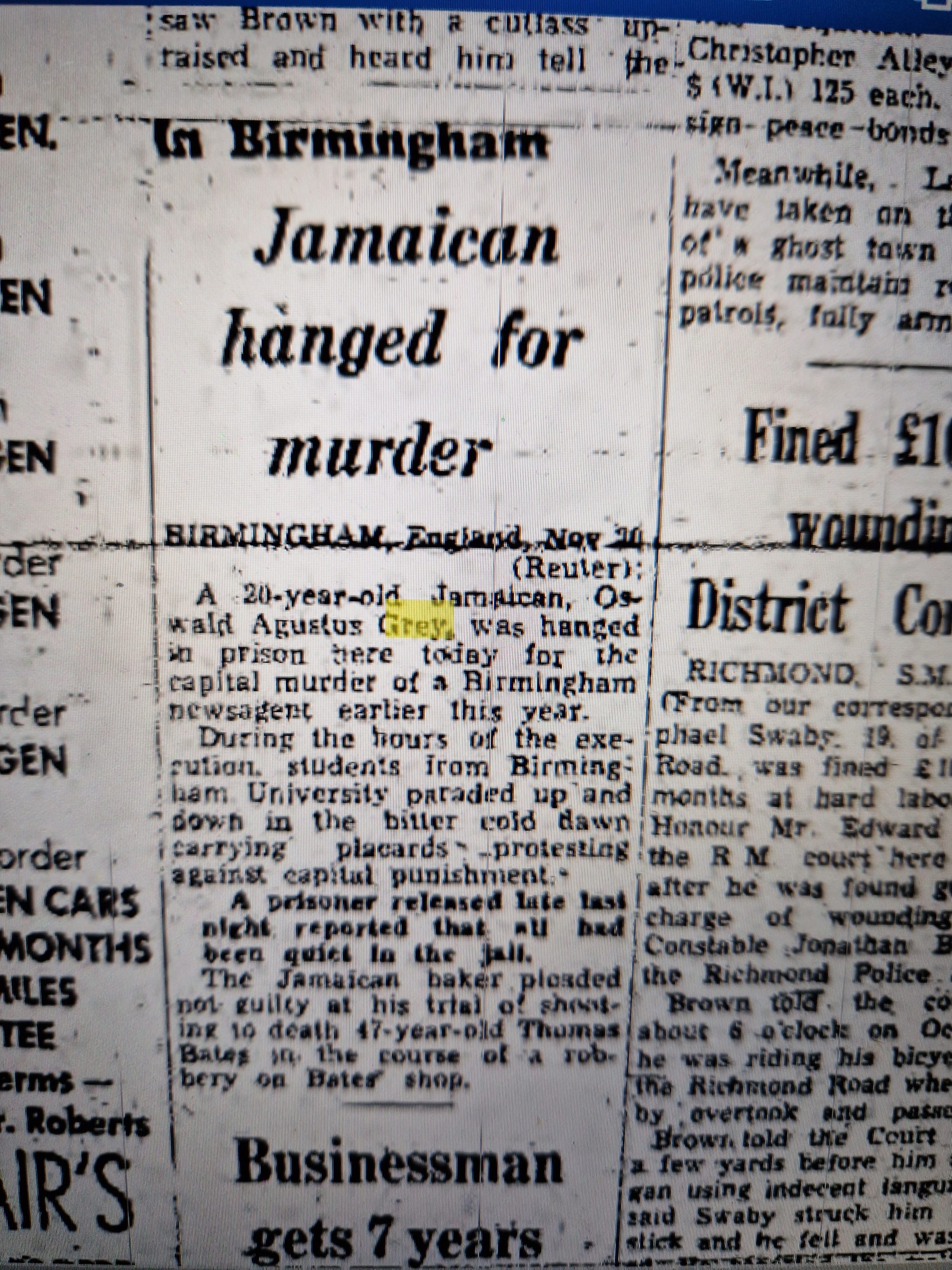 From the death of gentle, well-respected shopkeeper, Thomas Bates, to the execution of Oswald Grey, six months did not pass. He was the last man to be hanged in Winson Green and the last Black man to be hanged in Britain. Only five more men went to the gallows before the abolition of capital punishment in 1965.