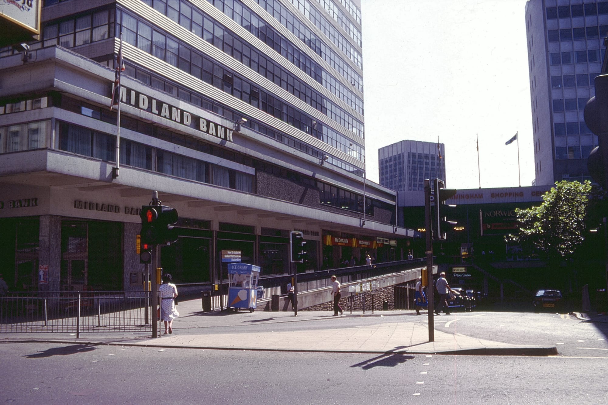 During the same year, central government extended its ban on new office development in London to Birmingham. While this might have undermined the city’s economy, it did have the side effect of saving the set of Victorian buildings opposite, at the junction with Corporation Street, where another redevelopment had been proposed.
