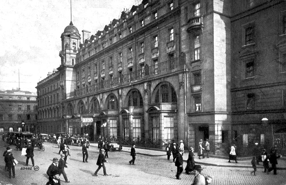 Exiting via the main route out onto Stephenson Street, the splendour was sustained at the front, where the six storey, Italian-style Queen’s Hotel which was designed by William Livock and built in 1854, joined up with the station.