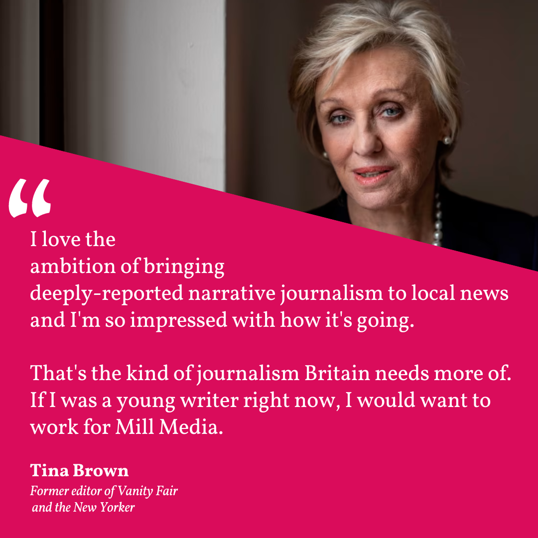 Since June 2020, this approach has turned Mill Media into a new force in British journalism, described as “One of the most interesting and impressive media startups of the last decade,” by the FT’s John Burn-Murdoch, and as “very, very impressive” by the Wall Street Journal’s Emma Tucker. Most recently Tina Brown, the legendary former editor of Vanity Fair and the New Yorker, said: “If I was a young writer right now, I would want to work for Mill Media.”